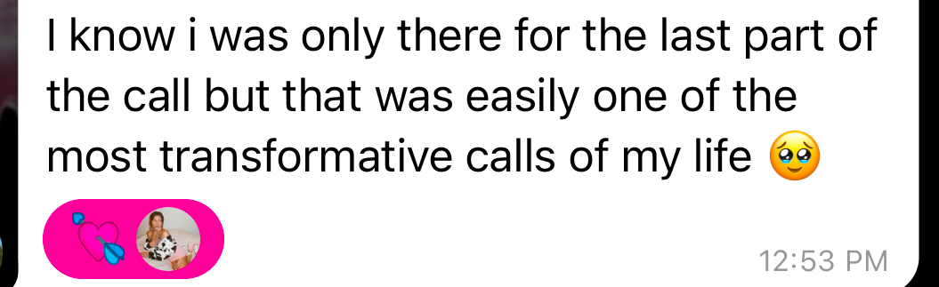 Meeting live every week has built so much momentum, and anytime doubts or fears creep in, we clear them on the call, and I feel activated into my power again.