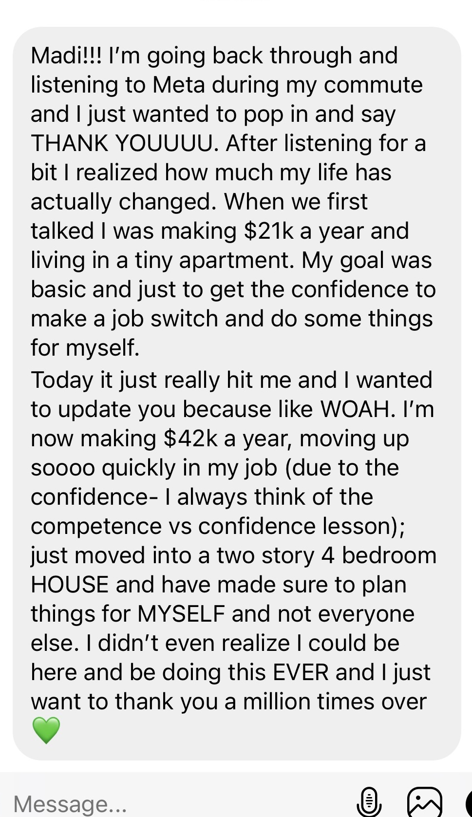 Being a part of Meta also led me to a new tribe, filled with beautiful souls who resonate with this path and want more out of life. I didn't know it when I signed up, but that was definitely missing from my journey."