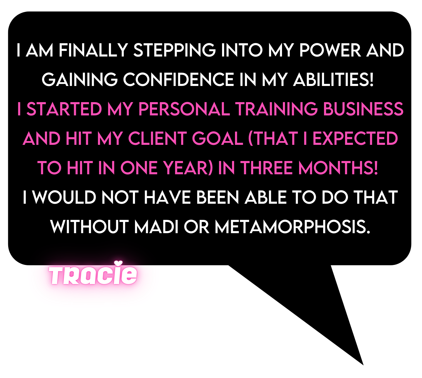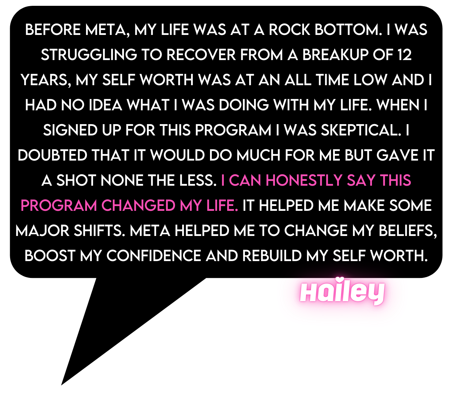 this program has now changed hundreds of lives and has 18+ hours of trainings, guest speaker lessons + actionable homework & journal prompts that take you through a FULL Metamorphosis. (worth $1200+)