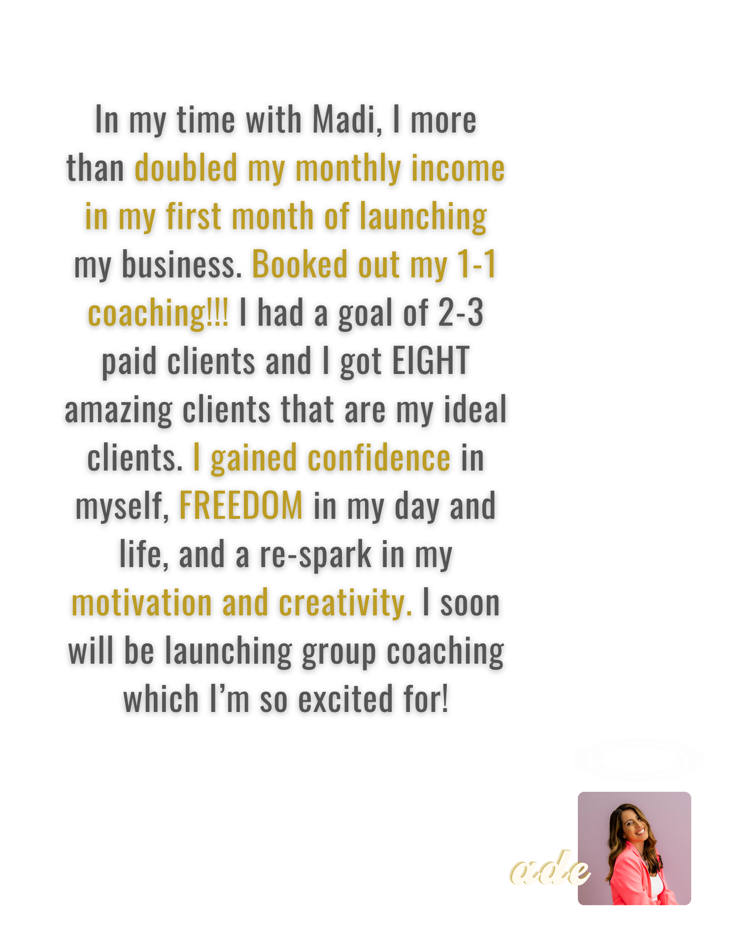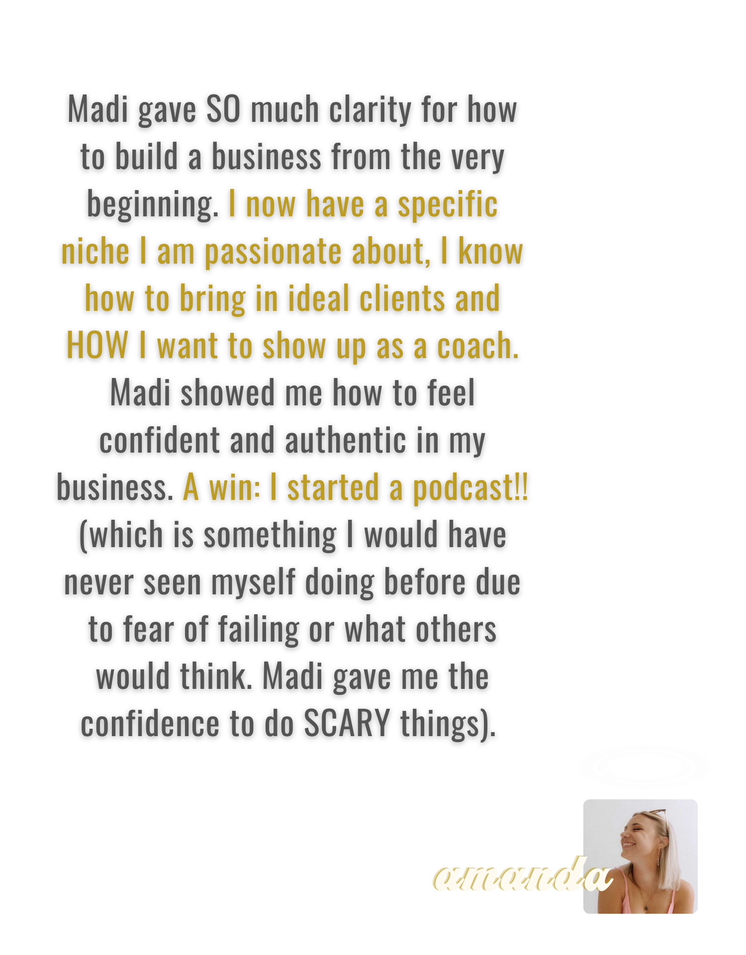I had scarcity and fear come up.. but I ended up moving past my fear and listening to my intuition by choosing to work with madi and it was hands down the best decision I couldβve ever made.