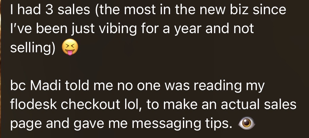 for real-time coaching on your content⦠your messaging⦠your execution. so you're not lost trying to implement on your own. you get real feedback from me to spice up your content even more.